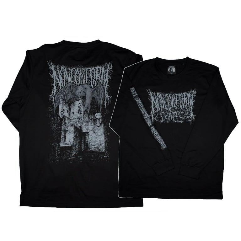 -grey screen print on front, back and right sleeve