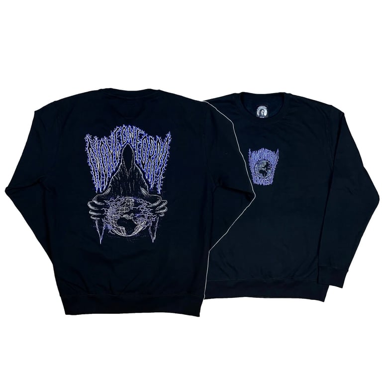 Regular fitting crew neck sweater. Hand printed in Germany with water based screen print colors.